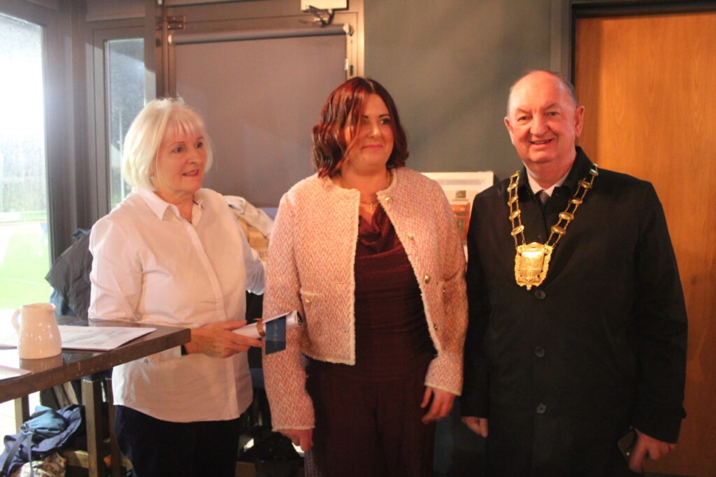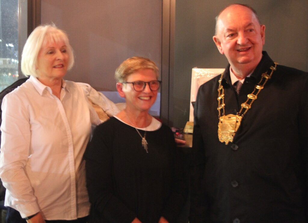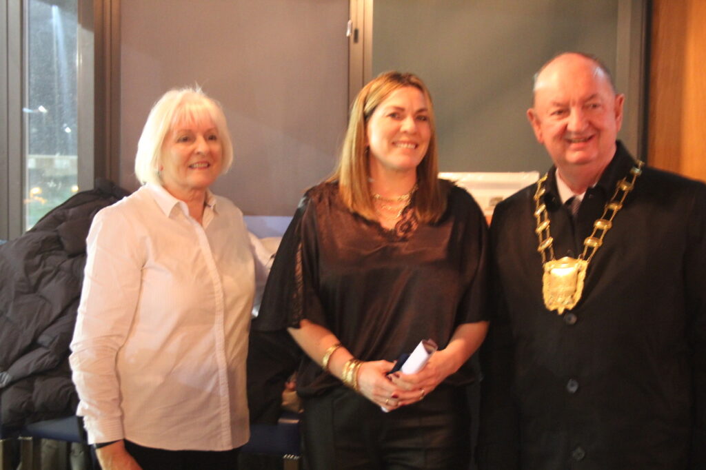 Sarah Jane Donnelly of “Hair” salon, Strand St with Marian Forde (STT) and Mayor Tom O’Leary